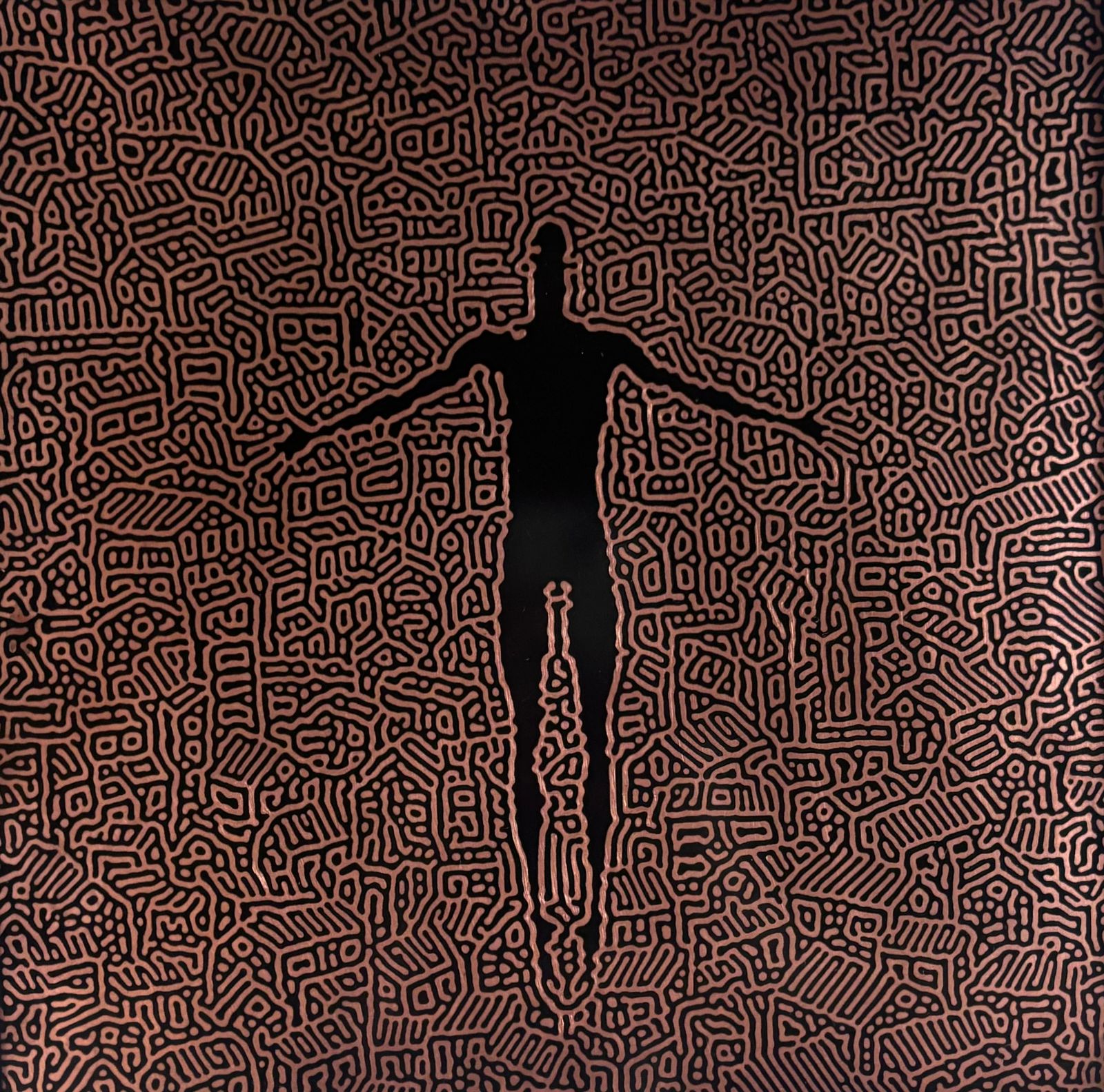 His practice is deeply personal. He paints on copper not only for its luminous, reflective surface and rich patina, but also for its symbolic connection to memory, time, and his own childhood. In Ishara’s work, you can sense a quiet reminder of what we are leaving behind—and an invitation to remember the beauty that once surrounded us.