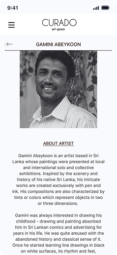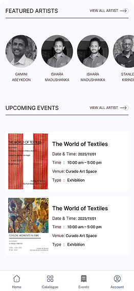 Curado is the digital extension of Curado Art Gallery in Colombo, created to make art more accessible beyond the physical gallery space. The app allows users to explore curated artworks, discover detailed artist profiles, and stay informed about ongoing and upcoming exhibitions.