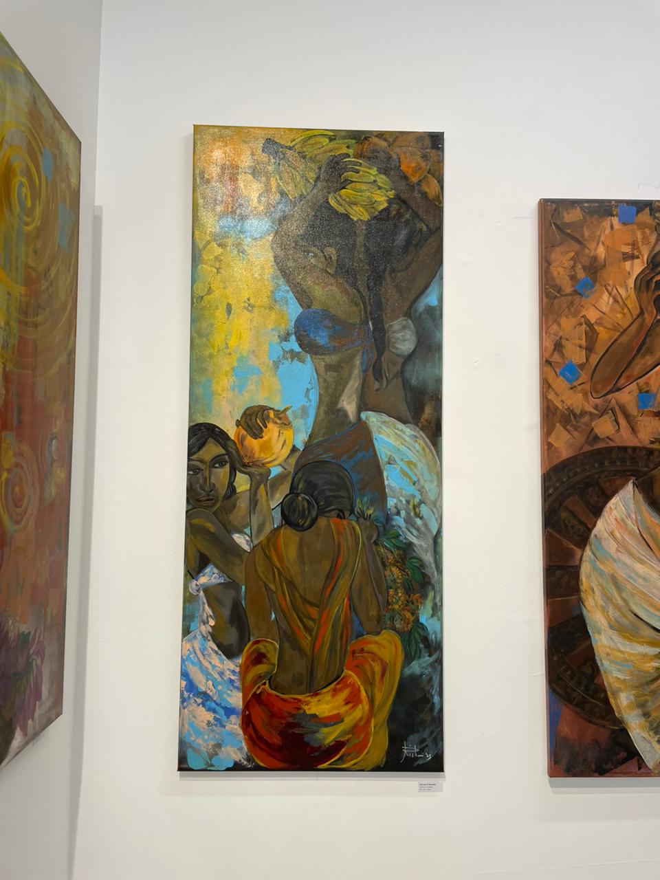 In Ceylon: Moments in Time, she steps into the stories that shaped this island long before it was Sri Lanka – back to Serendib, Taprobane, and even further into the whispered age of Ravana’s reign. Through her work, the past is not reconstructed but re-dreamed: figures move with ancient familiarity, colors pulse with forgotten rhythms, and moods shift like fragments of time caught by her mind’s camera.